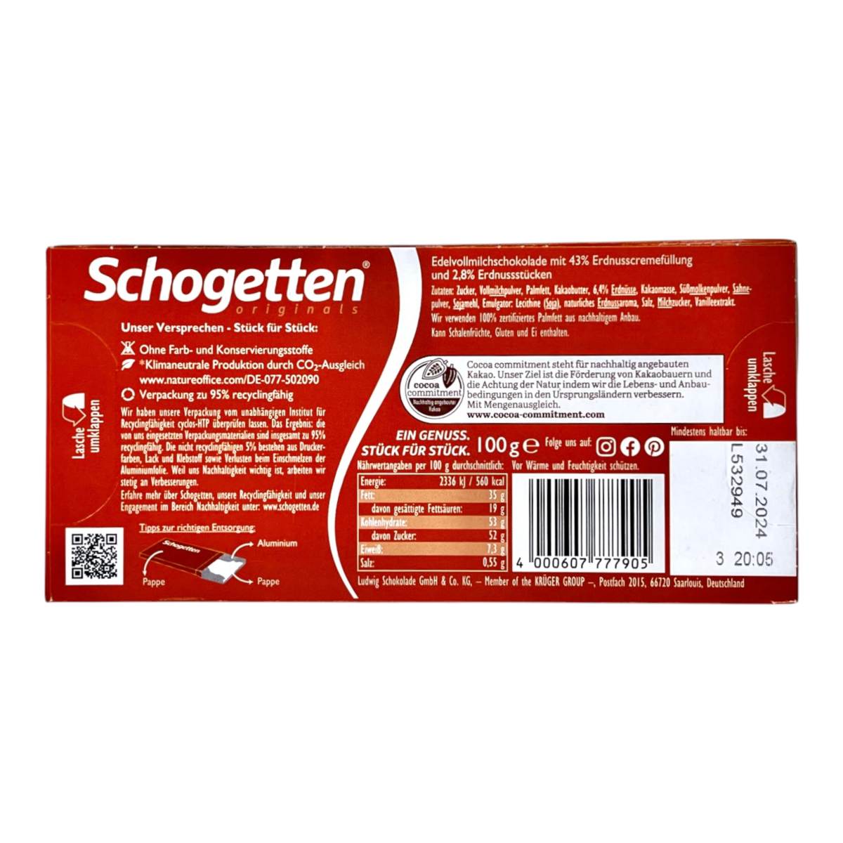 Шоколад молочний Schogetten з арахісовим кремом crunchy peanut butter, 100 г