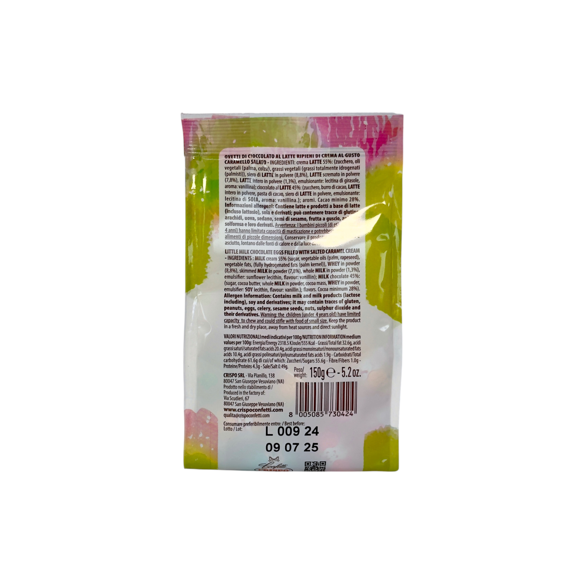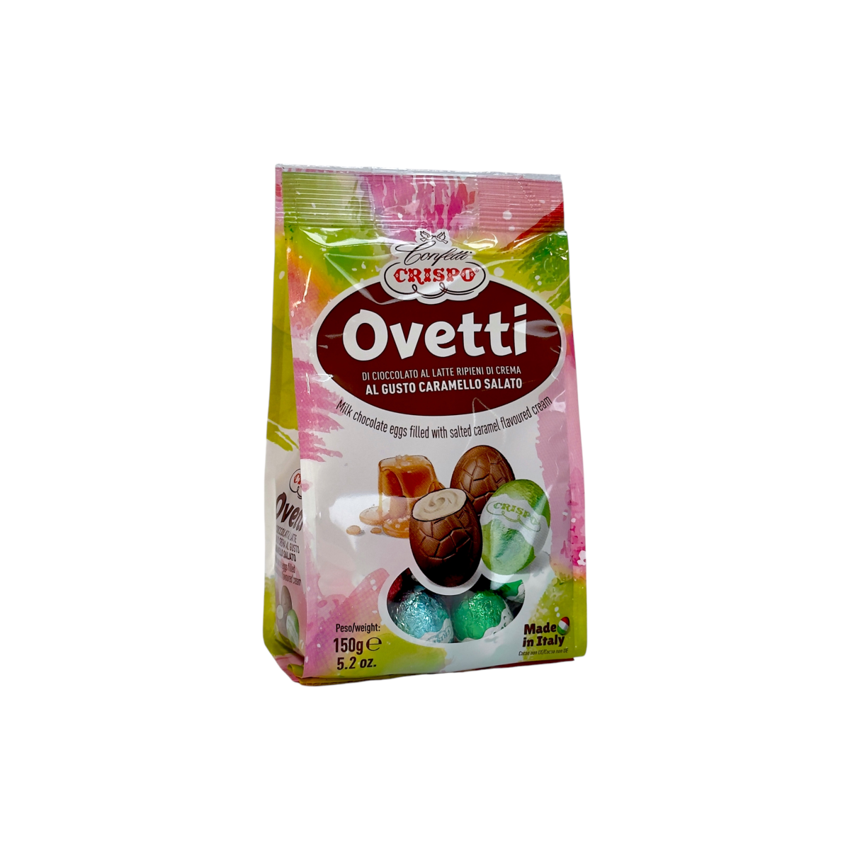 Яйця шоколадні Crispo з кремом солона карамель ovetti di cioccolato al latte al gusto caramello, 150 г