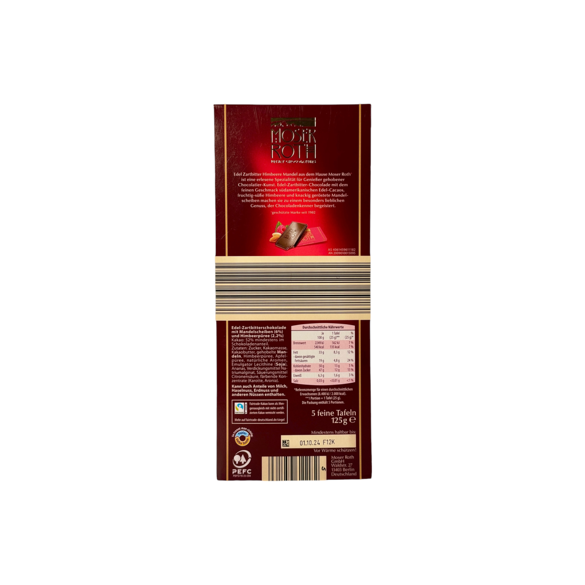Шоколад чорний Moser Roth з мигдалем та малиною himbeere mandel, 125 г