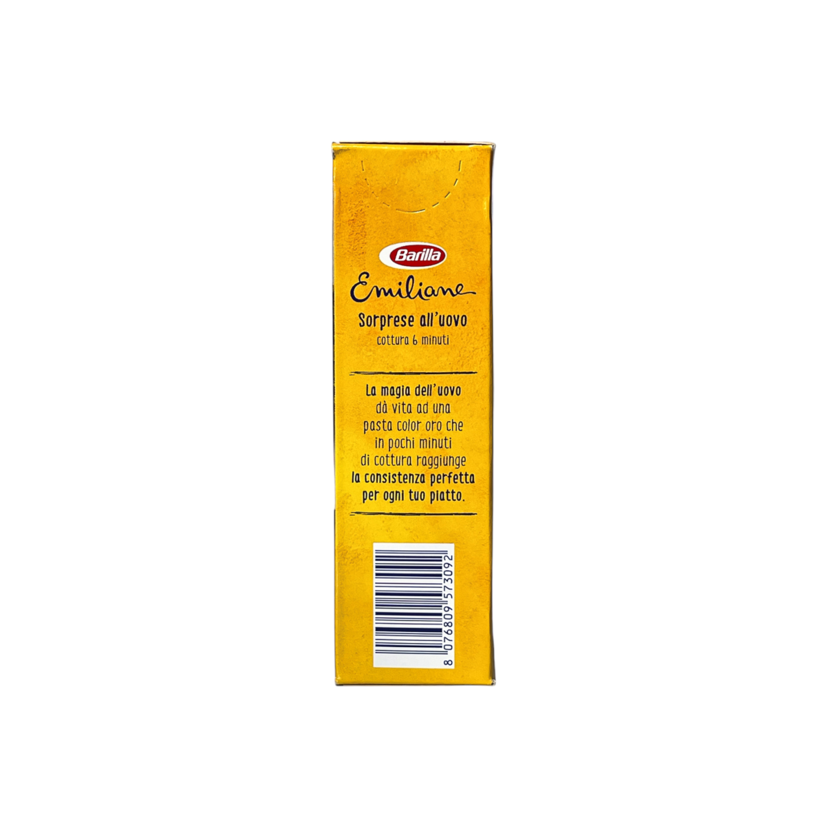Barilla Emiliane sorprese all’uovo — це преміальна яєчна паста, виготовлена в Італії зі 100% пшениці твердих сортів та свіжих яєць категорії А. Форма «sorprese» надає можливість створювати унікальні рецепти, особливо в поєднанні з легкими соусами, овочами чи бульйонами. Завдяки швидкому приготуванню (6 хвилин) паста зберігає ніжну текстуру та насичений смак.