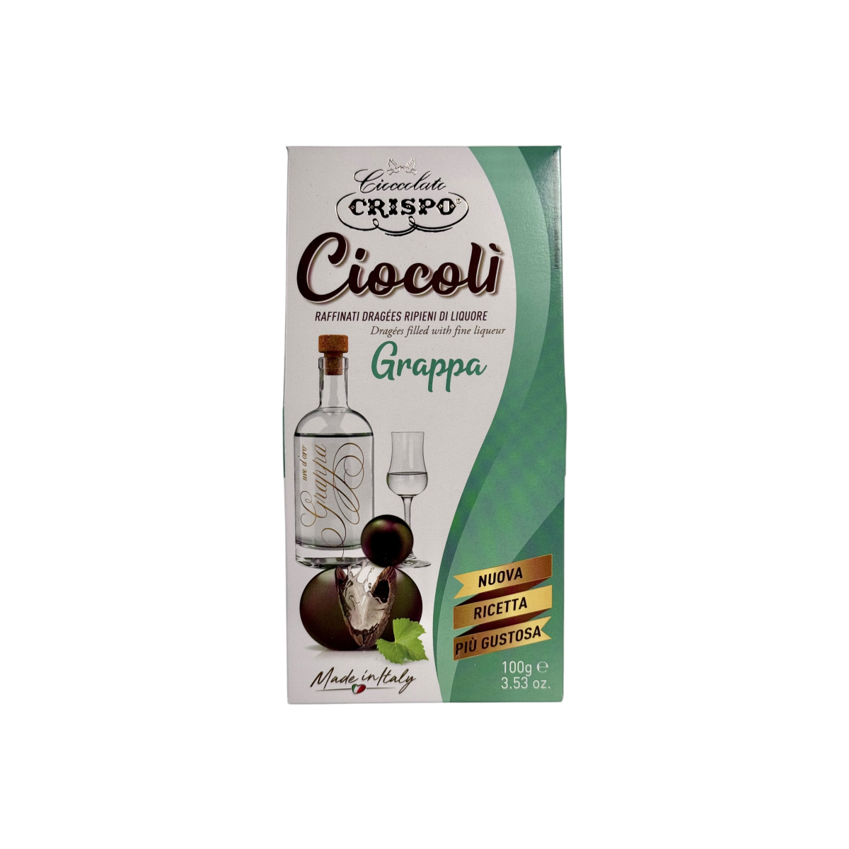 Італійські шоколадні драже Crispo Ciocolì з лікером Grappa — витончений десерт для гурманів.