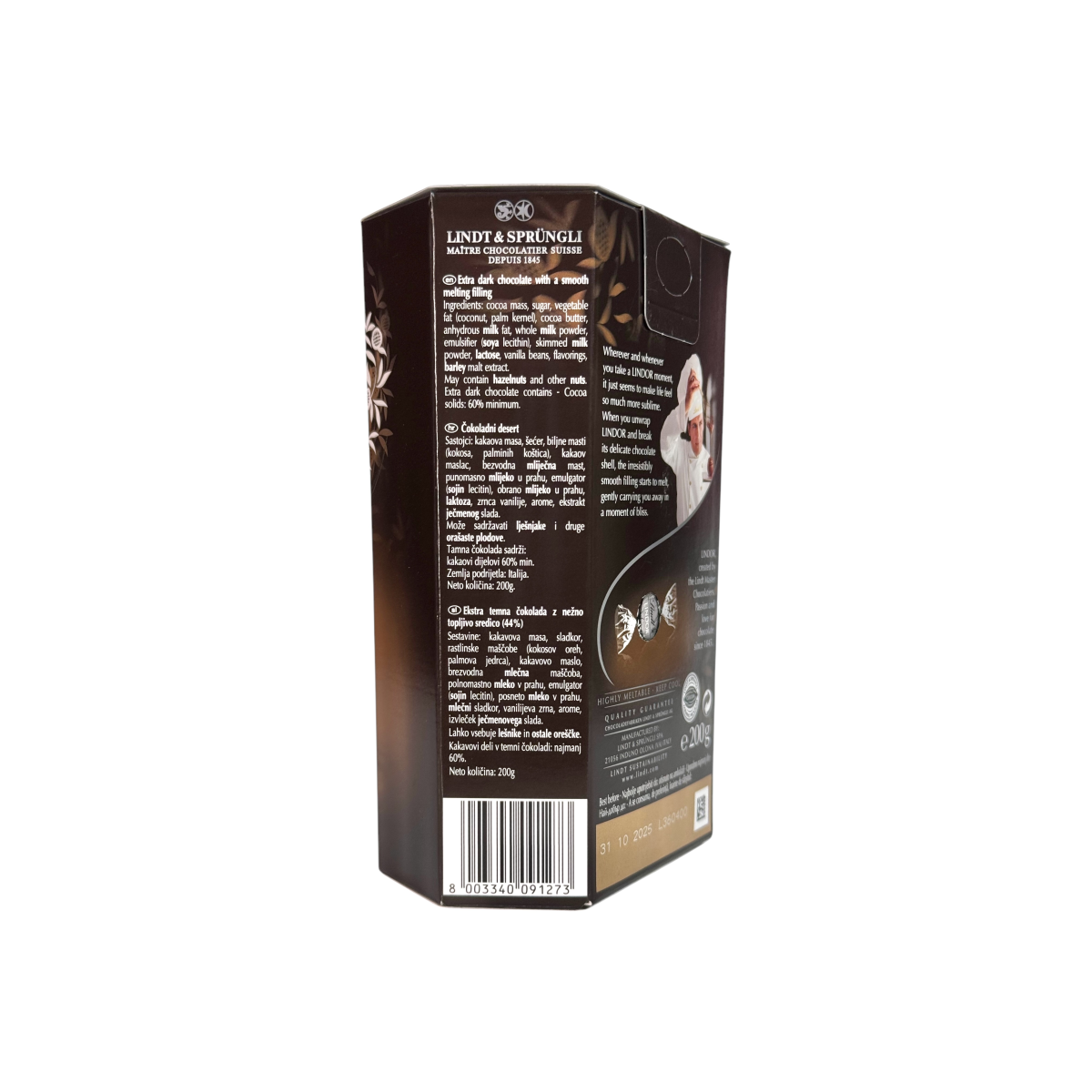 Кожна цукерка — це тендітна оболонка з екстра темного шоколаду (60% какао), всередині якої — неймовірно ніжна топлена начинка, що тане у роті.