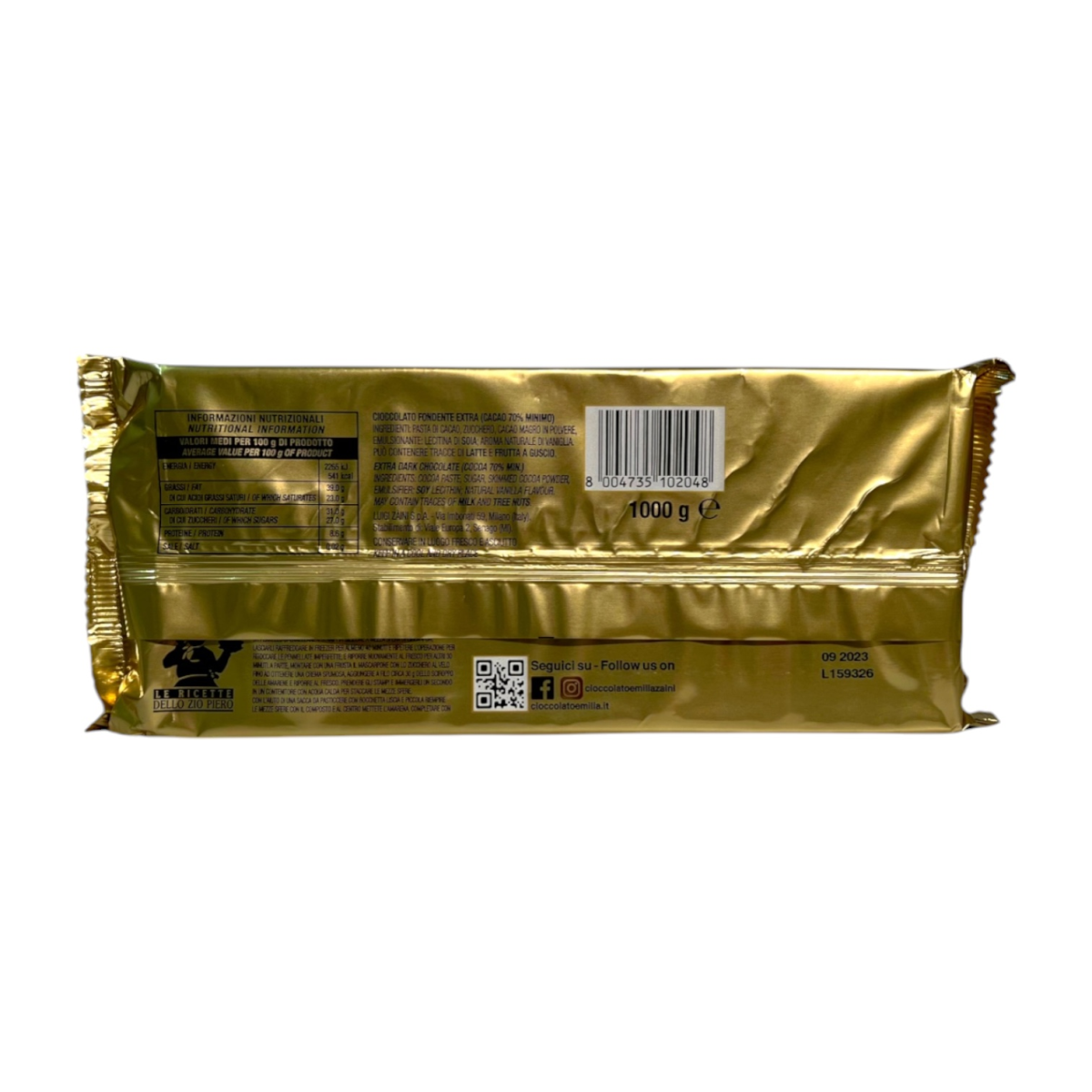 Zaini Emilia Fondente Extra — це високоякісний шоколад, створений за рецептом італійського бренду Zaini, який працює з 1913 року. Завдяки вмісту 70% какао він має насичений смак із благородною гірчинкою та глибоким ароматом. Ідеально підходить для професійного використання у кондитерських, кав’ярнях або вдома — для тортів, мусів, трюфелів і глазурі. Без глютену, виготовлений лише з натуральних інгредієнтів і чистого какао-масла.