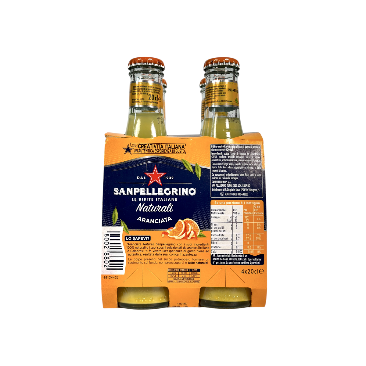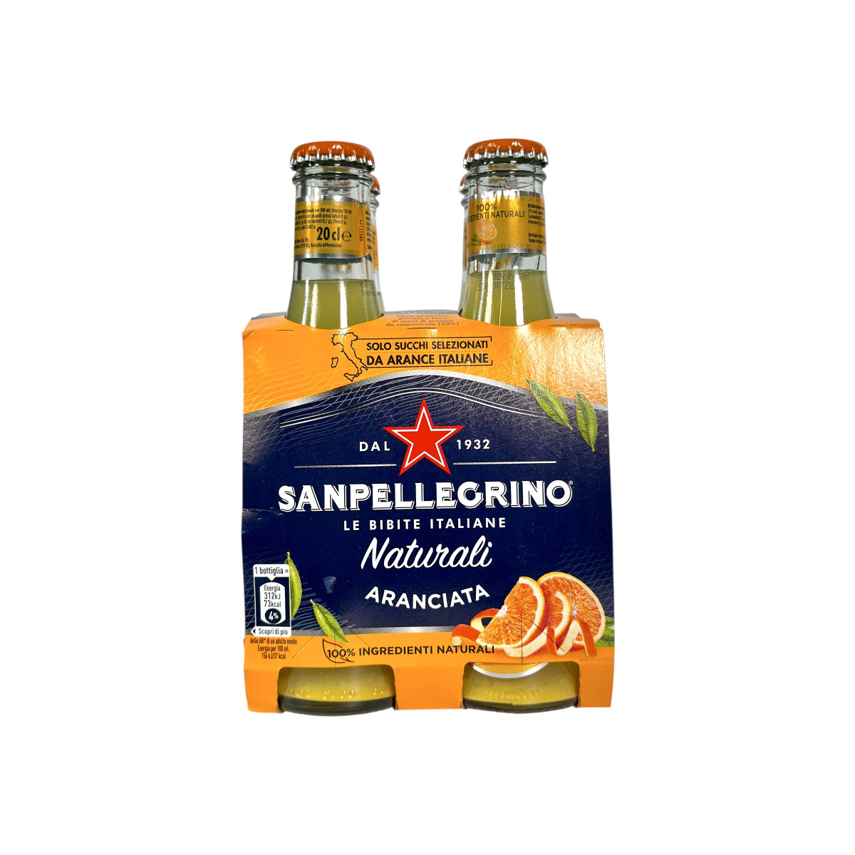 Sanpellegrino — легендарний бренд з Італії, відомий з 1932 року, що дарує справжню насолоду натуральними газованими напоями. Aranciata виготовлена з відбірних соків апельсинів Сицилії та Калабрії, без барвників та консервантів. Це освіжаючий цитрусовий напій з ніжною солодкістю та легкою кислинкою, ідеальний для втамування спраги чи як доповнення до страв. Завдяки 100% натуральним інгредієнтам напій має справжній фруктовий смак і створює відчуття середземноморського літа.