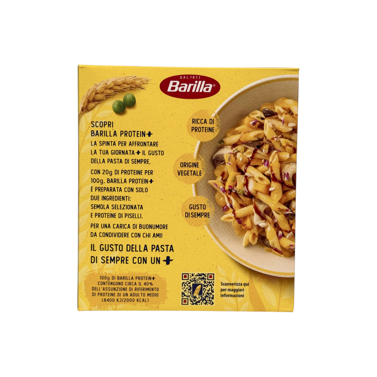 Паста Barilla Protein+ Penne Rigate — це ідеальний вибір для тих, хто цінує смак класичної італійської пасти, але хоче отримати більше користі з кожної порції. Завдяки 20 г рослинного білка на 100 г макаронів, ця паста стане ідеальним варіантом для спортсменів, активних людей і всіх, хто турбується про раціон. А ще — ми є прямими постачальниками і завозимо оригінальний товар, створений для внутрішнього ринку Італії — гарантія автентичного смаку та найвищої якості!