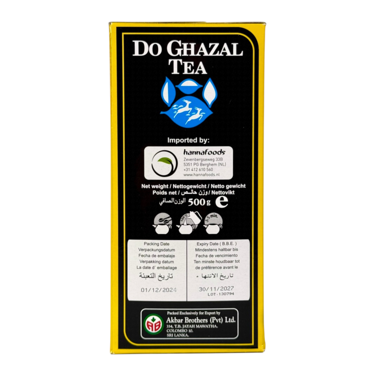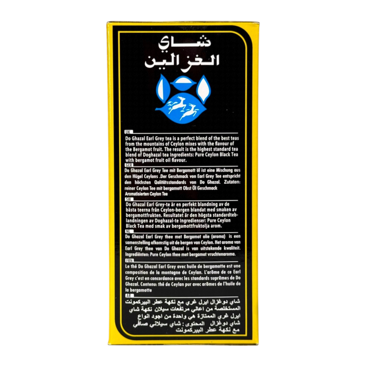 Do Ghazal Earl Grey — це легендарний цейлонський чорний чай із найкращих плантацій Шрі-Ланки, збагачений натуральною олією бергамоту. Вироблений компанією Akbar Brothers, яка є світовим лідером з експорту чаю зі Шрі-Ланки, він поєднує в собі насичений смак, тонкий цитрусовий аромат та освіжаючу післясмаку. Це оригінальний продукт, призначений для внутрішнього та міжнародного ринку, що підтверджує його якість і автентичність. Ідеально підходить для щоденного вживання, як класичний гарячий чай, так і для приготування холодного айс-ті.