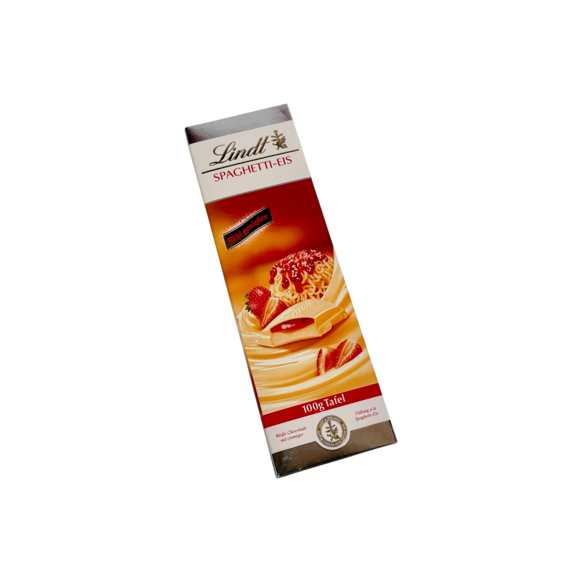 Ексклюзивний десерт від Lindt, створений за мотивами знаменитого німецького десерту Spaghetti Eis. Білий шоколад поєднується з ніжним кремом із ванілі (27%) та полуничною начинкою (13%), доповнений шоколадними шматочками для більшої насолоди. Це унікальний смак, який дарує атмосферу літа у кожному шматочку.