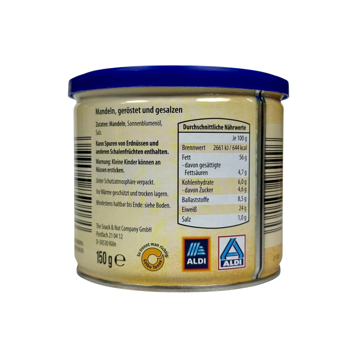 Tesoros del Sur пропонує класичний смак мигдалю, обсмаженого та підсоленого за іспанською традицією. Вироблений у Німеччині з ретельно відібраних ядер, продукт поєднує користь натуральних горіхів і насичений смак. Це джерело білка, клітковини та корисних жирів, що робить мигдаль не лише смачним, а й поживним. Завдяки металевій банці з захисною атмосферою горіхи залишаються свіжими довше.