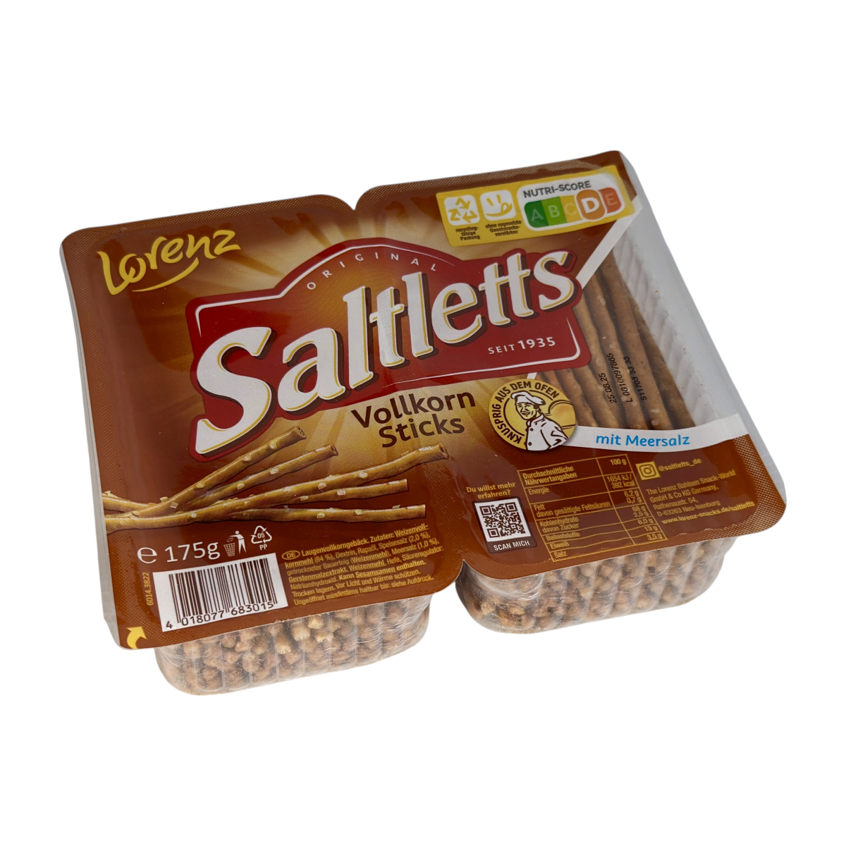 Хрусткі цільнозернові палички від Lorenz з морською сіллю — корисніший варіант класичних снеків.