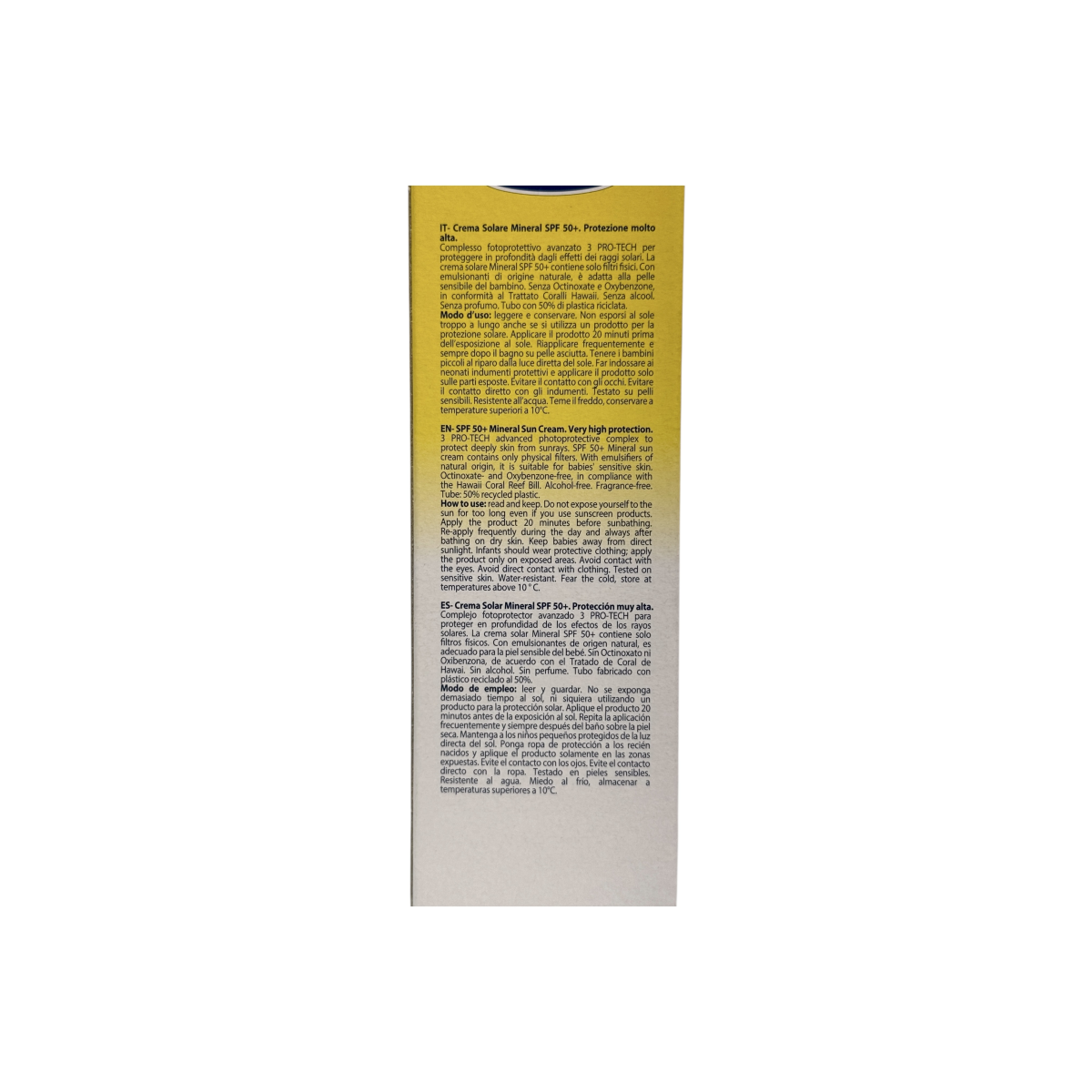 Завдяки інноваційній формулі 3 PRO-TECH крем забезпечує потрійний захист від UVA, UVB та інфрачервоного випромінювання. Мінеральні фільтри безпечні для малюків та довкілля, крем не містить спирту та ароматизаторів, протестований педіатрами та дерматологами. Водостійкий і підходить навіть для чутливої шкіри.