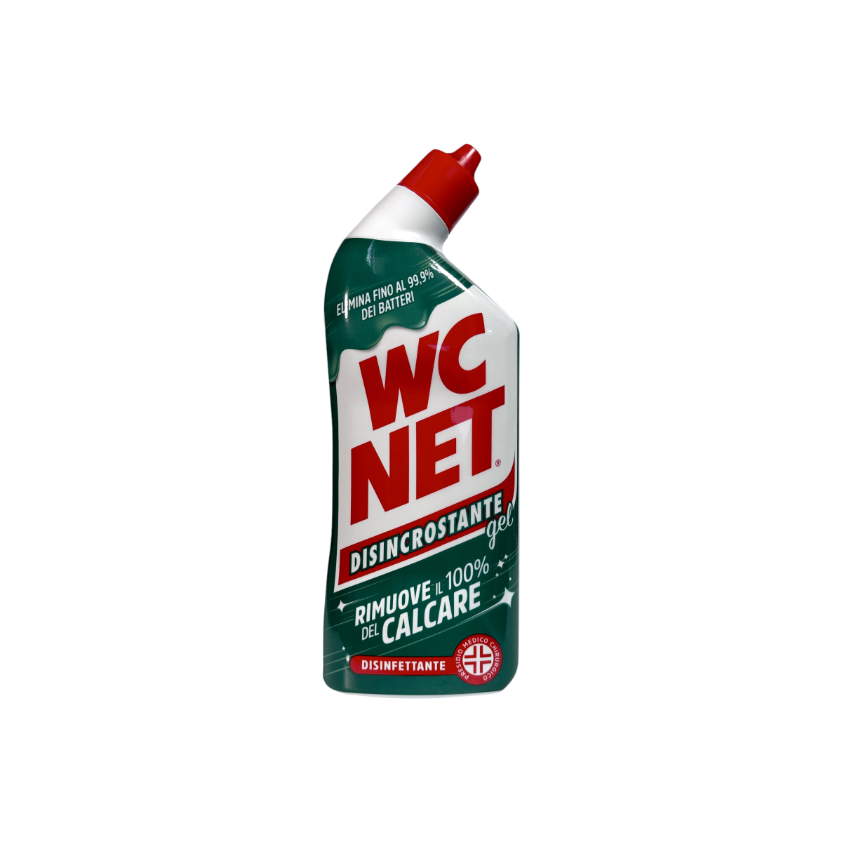 Потужний гель WC Net Disincrostante ефективно видаляє 100% вапняного нальоту та знищує до 99,9% бактерій, залишаючи унітаз бездоганно чистим і свіжим.