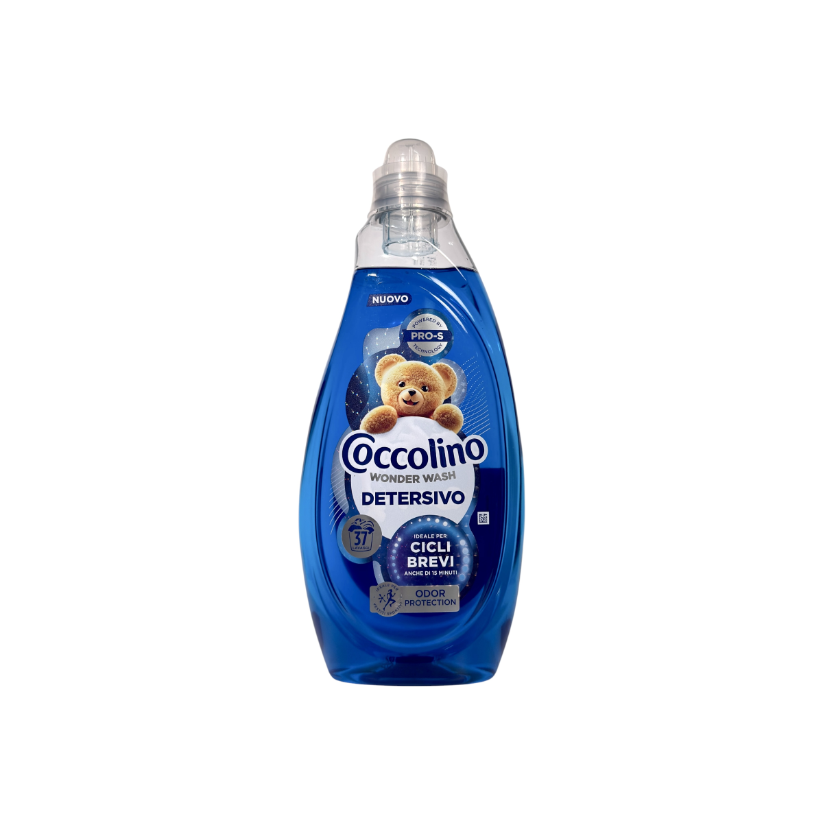Coccolino Wonder Wash Detersivo — це концентрований гель, розроблений для ефективного прання при низьких температурах і коротких програмах (від 15 хвилин). Технологія PRO-S забезпечує глибоке очищення волокон, зберігаючи м’якість тканин і залишаючи ніжний аромат свіжості. Засіб усуває неприємні запахи, підходить для всіх типів тканин, включно зі змішаними і кольоровими.