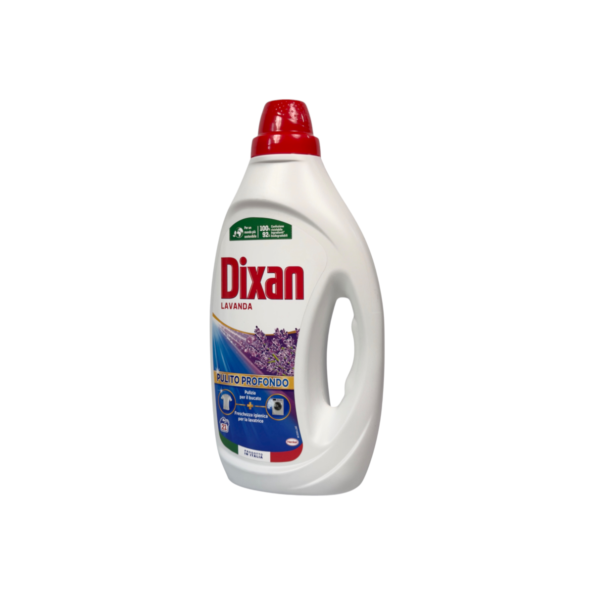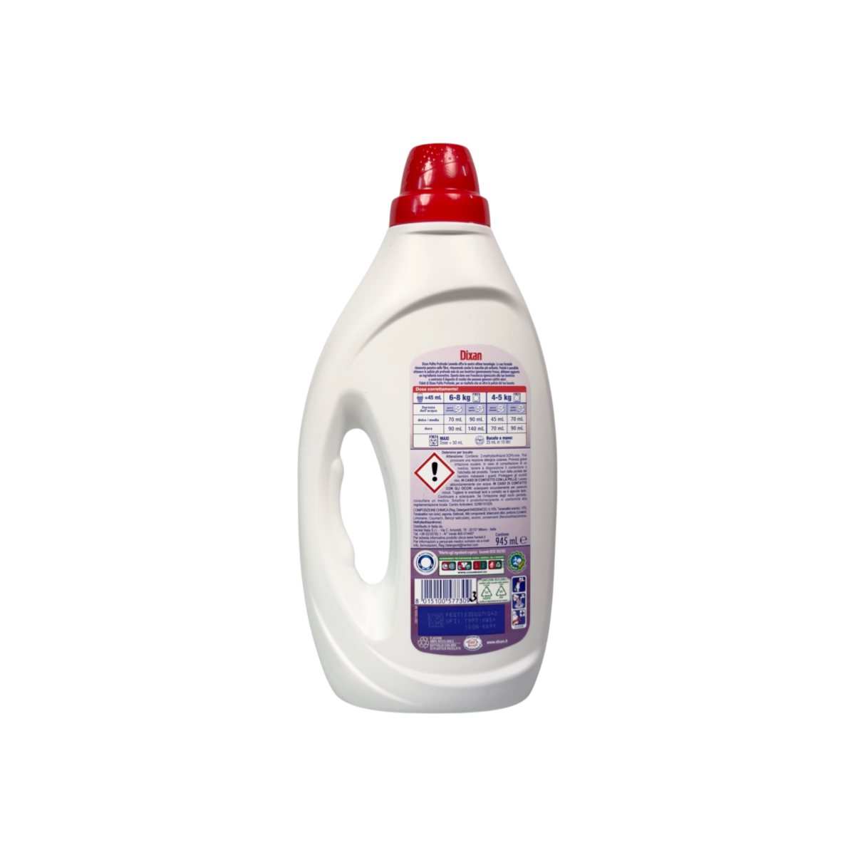 Гель для прання Dixan Lavanda забезпечує глибоке очищення тканин навіть при низьких температурах. Формула Pulito Profondo (глибока чистота) ефективно видаляє плями, зберігаючи яскравість кольорів і ніжність тканин.