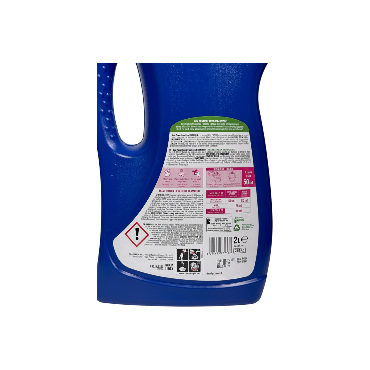 Хочеш, щоб речі були не лише чистими, а й пахли приємно після кожного прання? Dual Power Flamingo — гель для прання з квітковим ароматом, який освіжає та ефективно справляється навіть із складними забрудненнями. Підходить для всіх типів тканин (крім вовни та шовку), як для ручного, так і для машинного прання. Формула не містить мікропластику, безпечно для навколишнього середовища. Італійський продукт, створений для внутрішнього ринку — ми постачаємо його безпосередньо, без посередників. З Dual Power білизна пахне як нова!