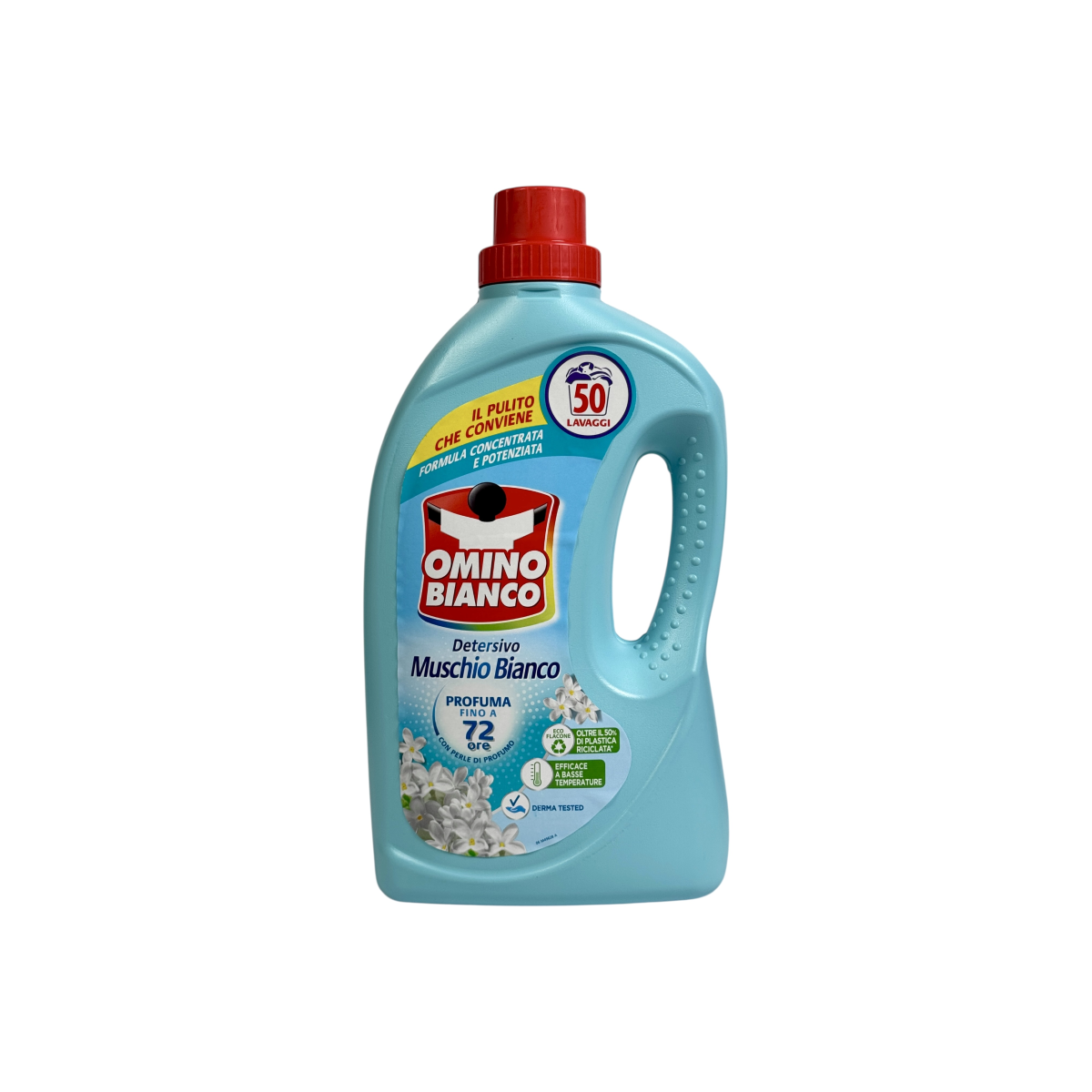Відчуйте силу італійської якості з гелем для прання Omino Bianco Muschio Bianco. Це оригінальний продукт внутрішнього ринку Італії, розроблений для ідеальної чистоти та захисту тканин. Гель ефективно видаляє плями навіть при низьких температурах, забезпечує глибоке очищення та залишає делікатний аромат білого мускусу до 72 годин. Формула концентрована, економна у використанні — до 50 прань з однієї упаковки. Підходить як для білого, так і для кольорового одягу.