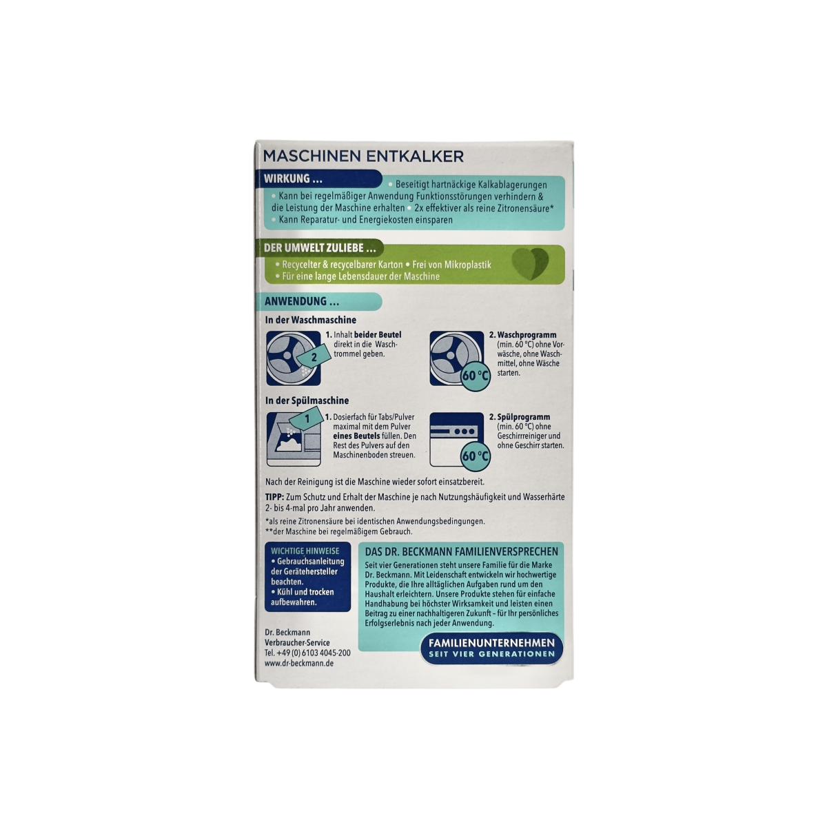 Засіб Dr. Beckmann проти накипу для пральних і посудомийних машин e Maschinen Entkalker, 2×50 г