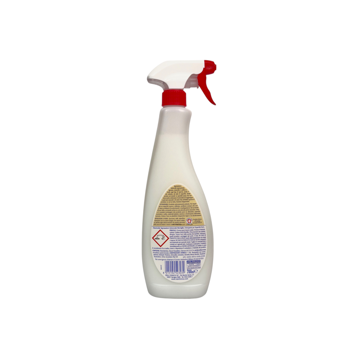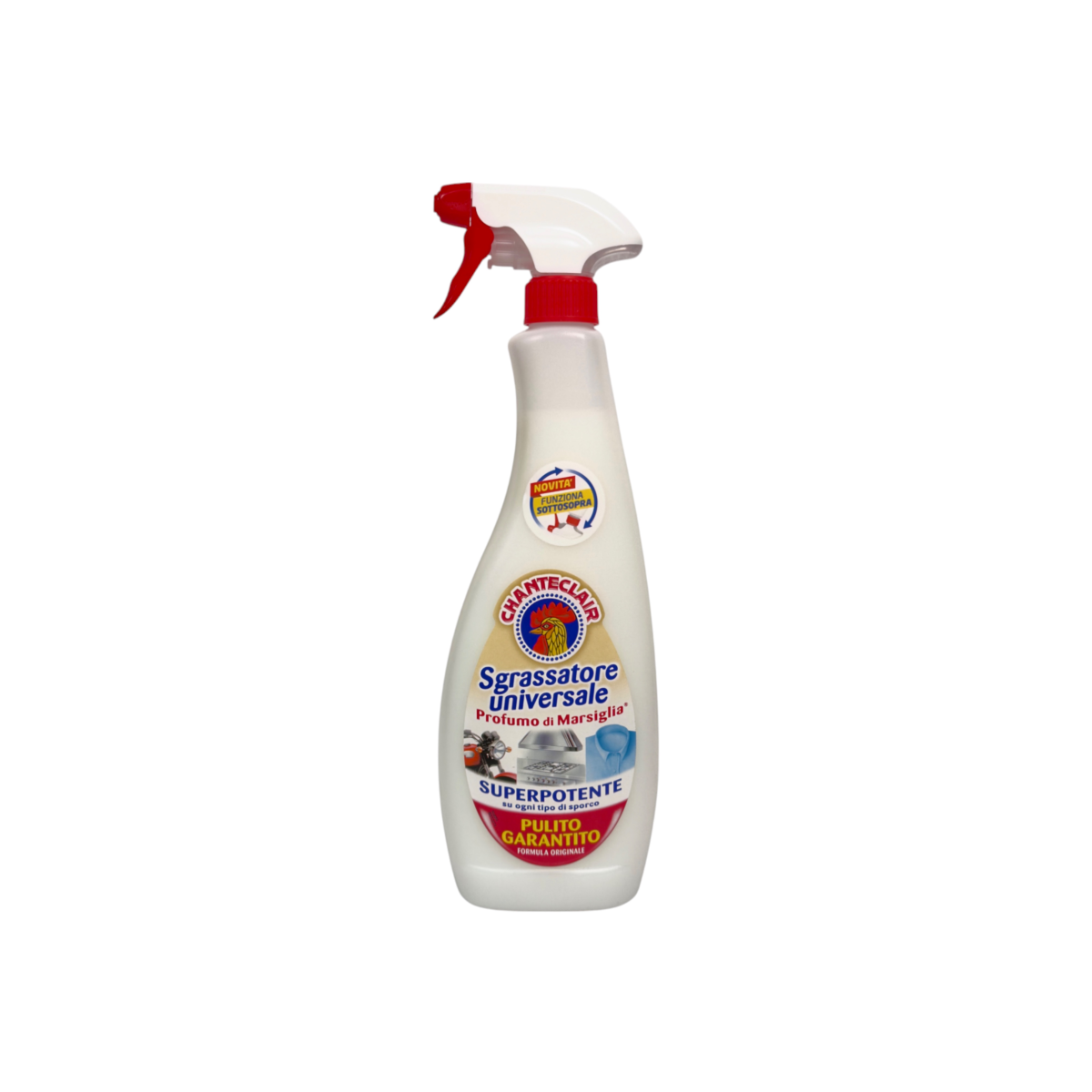Chanteclair Sgrassatore Universale Profumo di Marsiglia — потужний універсальний знежирювач для кухні, ванни, техніки та будь-яких поверхонь. Працює навіть у перевернутому положенні, легко видаляє жир, нагар, сліди їжі, бруду та пилу. Ми — прямі постачальники, тому в наявності тільки оригінальна продукція, виготовлена для внутрішнього ринку Італії. Засіб має приємний аромат марсельського мила, що залишає чистоту й свіжість після прибирання.