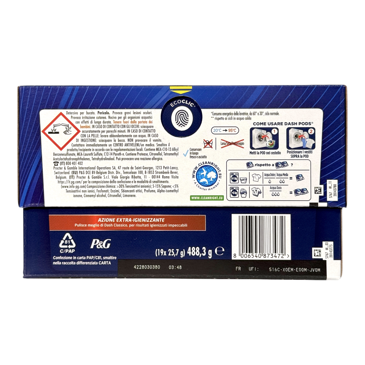 Капсули для прання Dash з антибактеріальним ефектом power pods extra-igienizzante, 19 шт, 488,3 г
