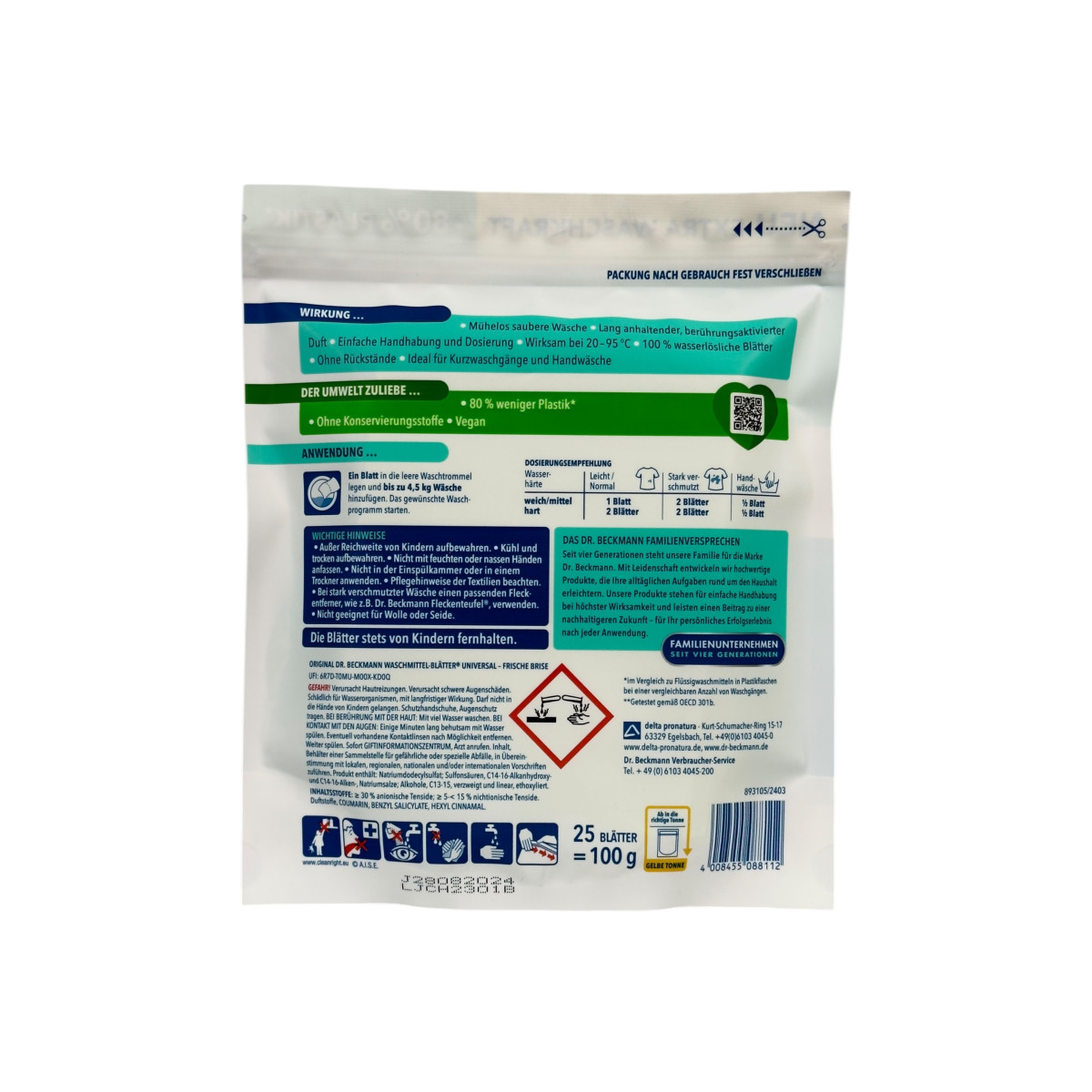 Листки для прання Dr. Beckmann універсальні океанські e waschmittel-blatter universal, 25 шт