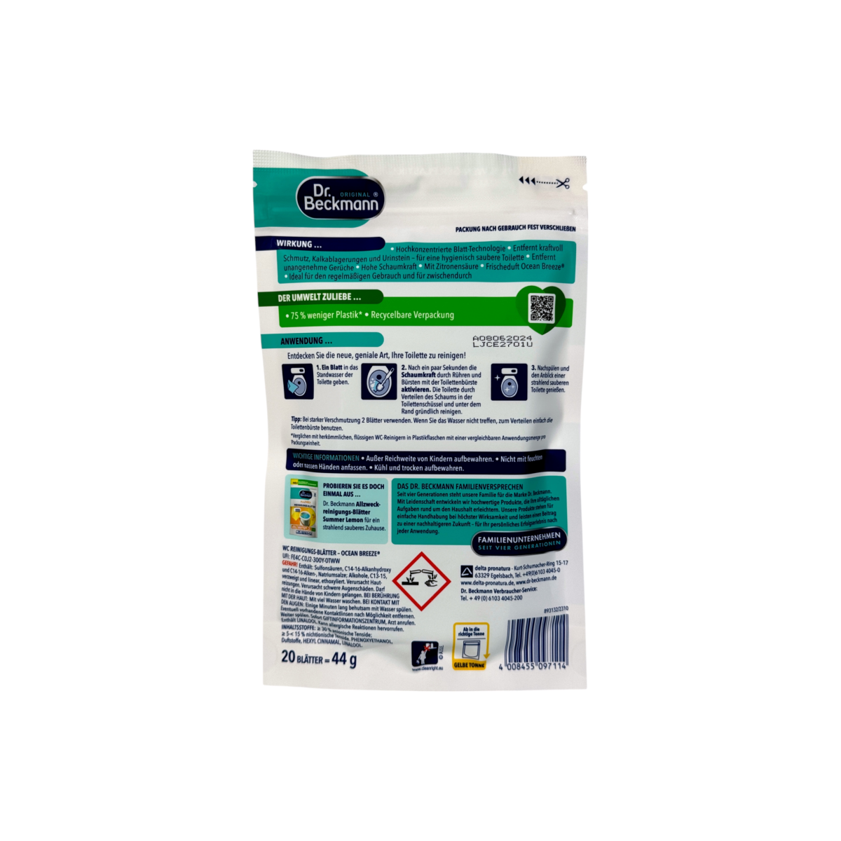 Серветки для унітазу Dr. Beckmann океанський аромат e reinigungs-blatter ocean breeze, 20 шт