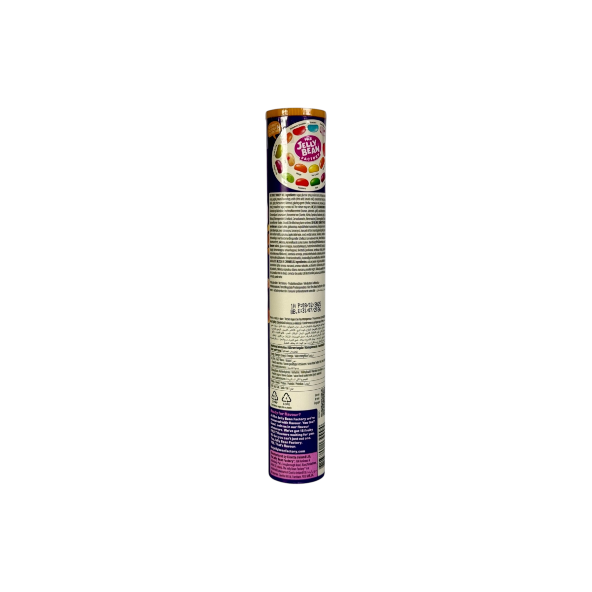 The Jelly Bean Factory — це преміальні желейні драже, які завоювали популярність у світі завдяки натуральним ароматам та різноманіттю смаків. У кожній баночці ви знайдете 18 унікальних фруктових поєднань: полуниця, яблуко, апельсин, чорниця, лимон, манго, ананас та інші. Цукерки виготовлені без штучних барвників і глютену, підходять для вегетаріанців. Зручна циліндрична упаковка робить Jelly Bean Factory ідеальною закускою у дорогу, на роботу чи для дитячої вечірки.