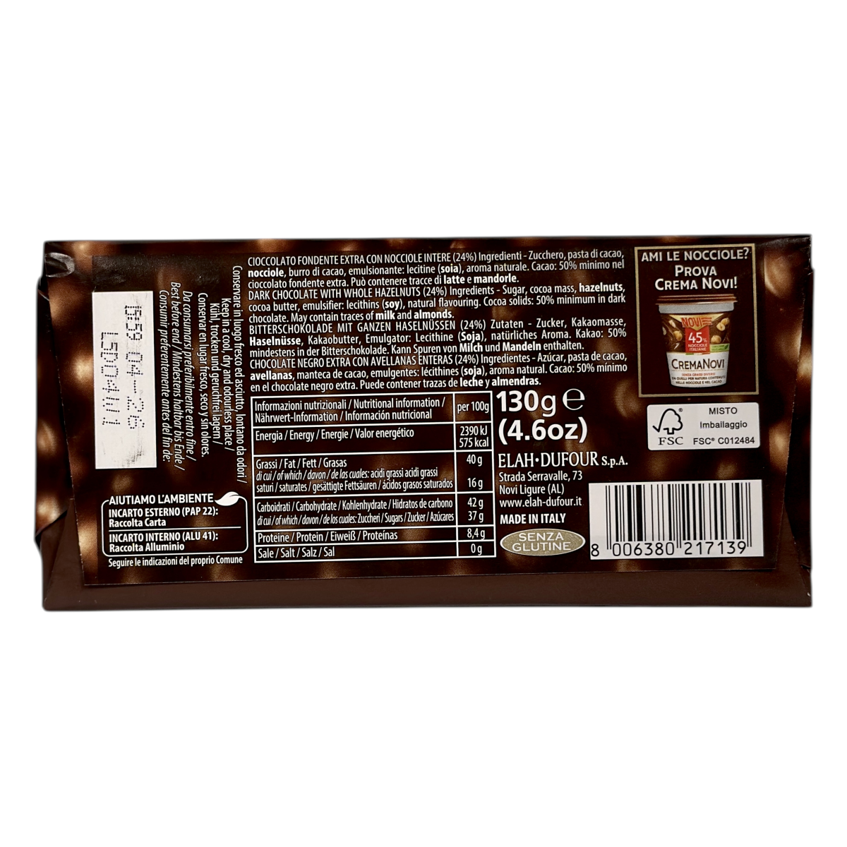 Шоколад чорний Novi з фундуком e cioccolato fondente extra con nocciole intere, 130 г