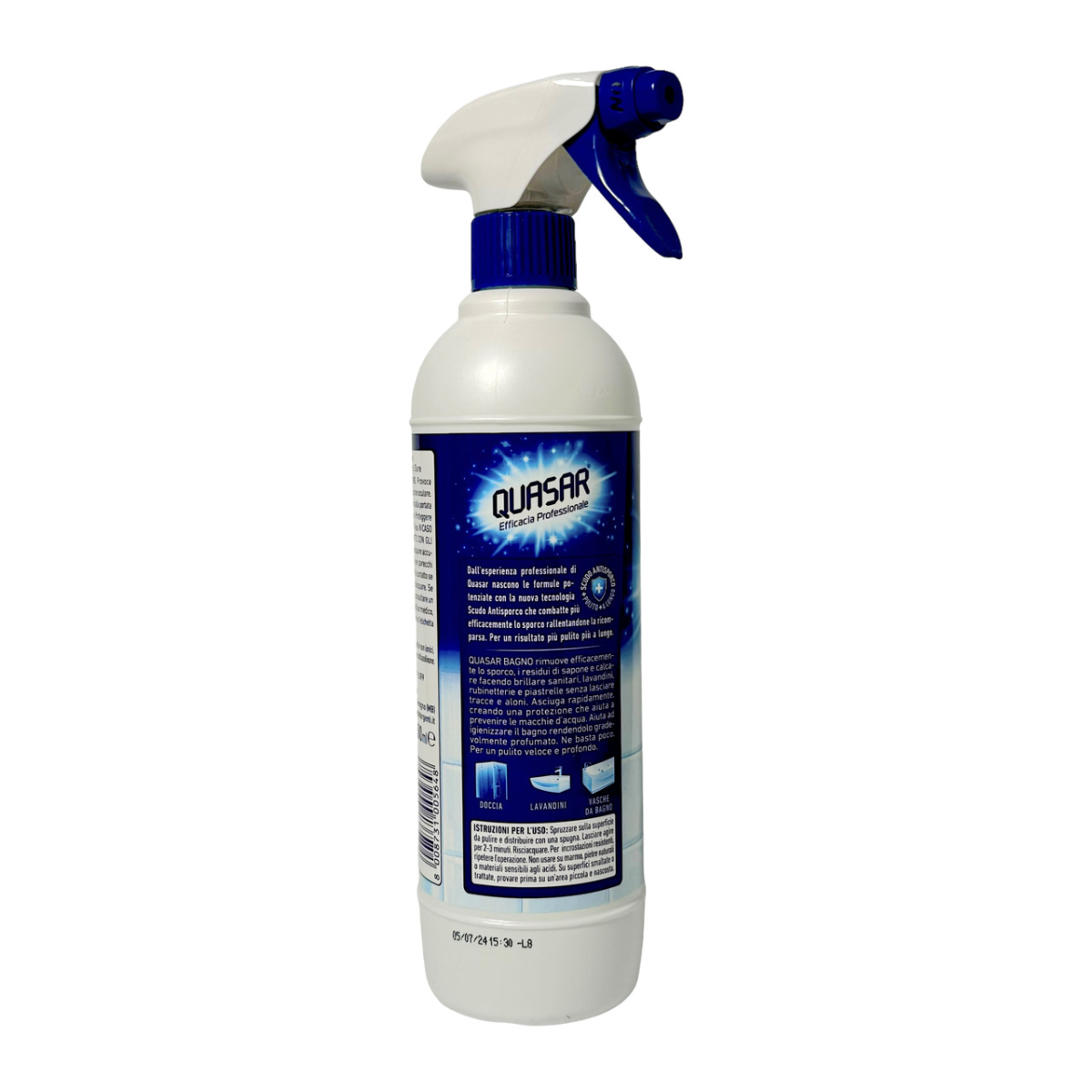 Професійний італійський засіб для очищення ванних кімнат Quasar Bagno Igienizzante ефективно видаляє вапняний наліт, залишки мила та дезінфікує поверхні, залишаючи блиск і свіжість.
