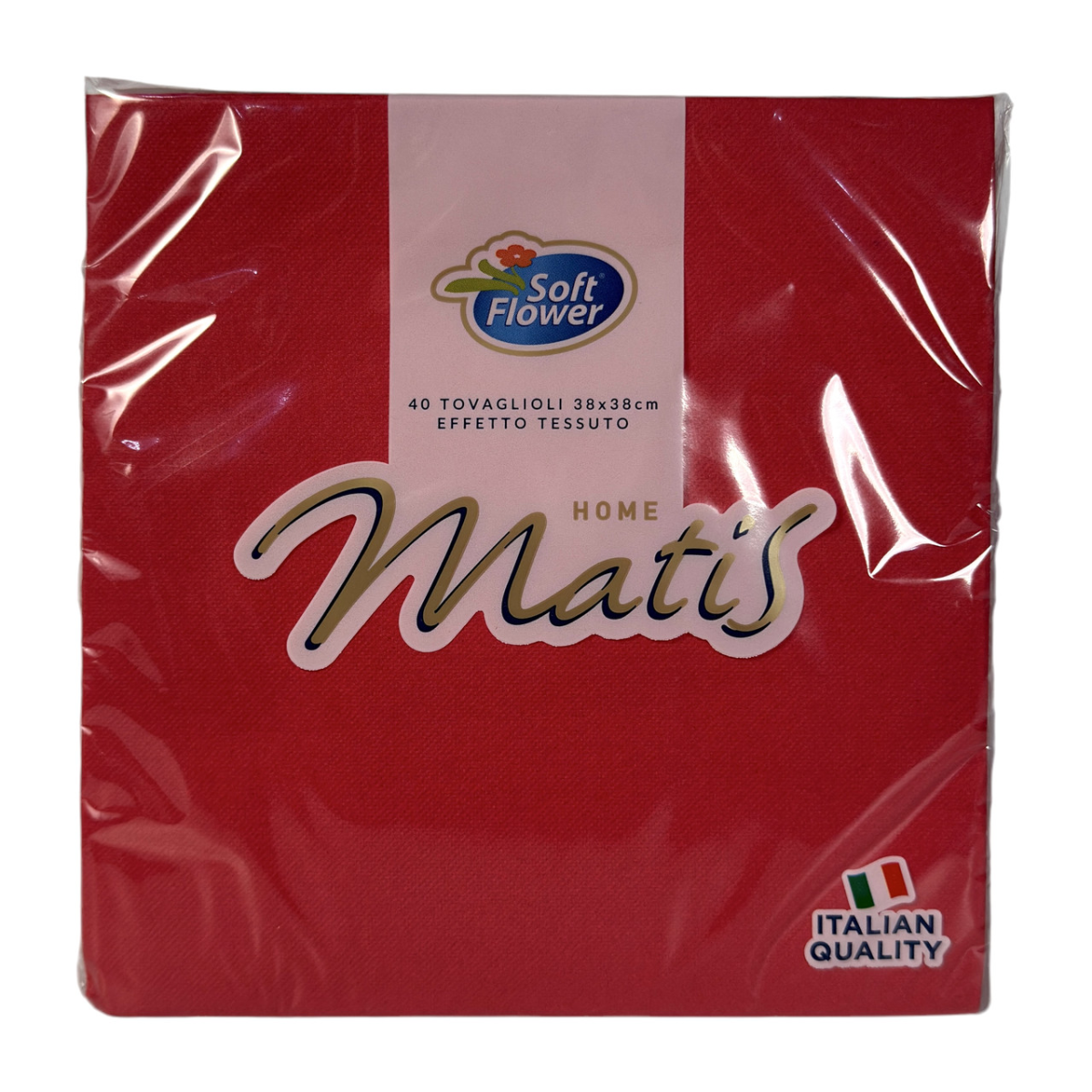 Серветки Matis паперові з ефектом тканини червоні tovaglioli di carta con effetto tessuto 38x38, 40 шт