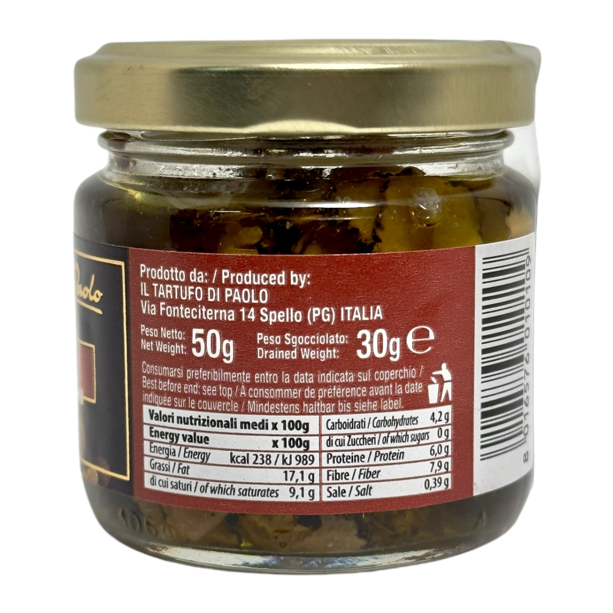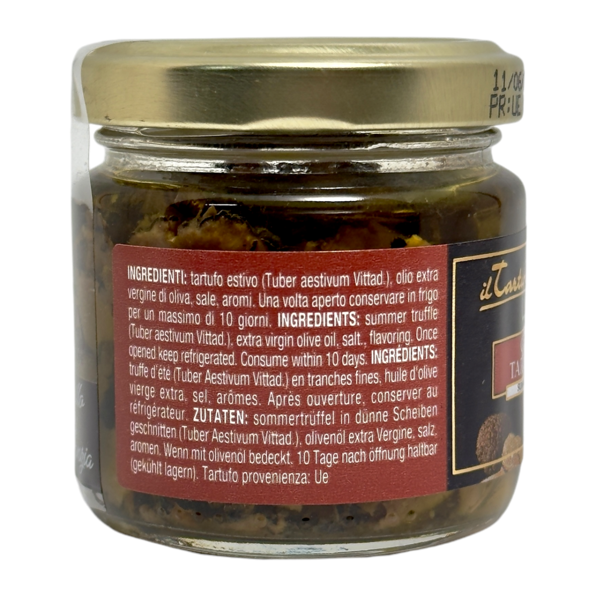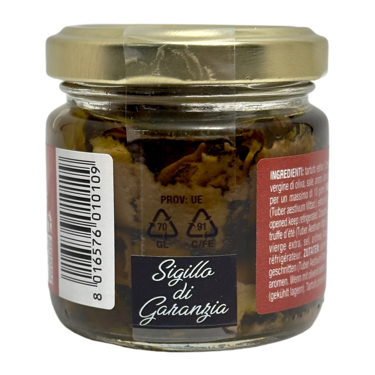 Вишуканий італійський делікатес із натурального літнього трюфеля, нарізаного тонкими скибочками та збереженого в ароматній оливковій олії.
